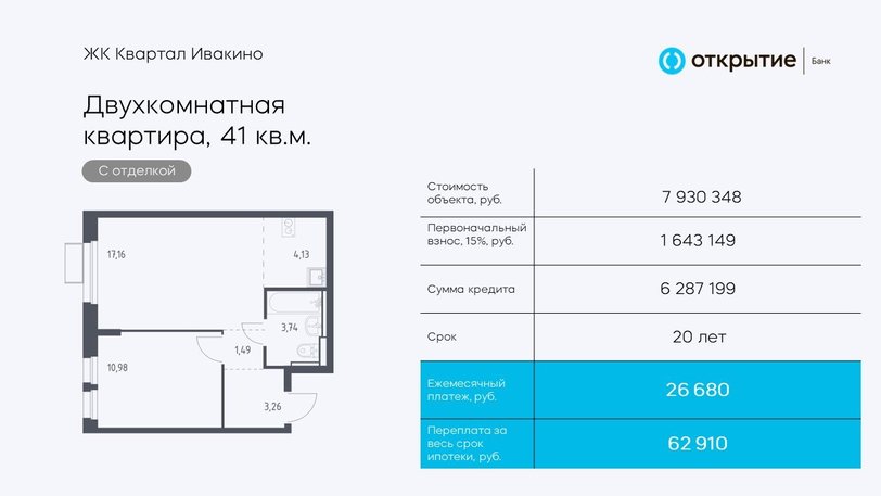 Самый бюджетный вариант — купить жилье без отделки или с чистовой отделкой. Два плюса: получаешь квартиру по самой низкой цене, ремонт делаешь на свой вкус. Но в таком случае нужно откладывать деньги на ремонт. Хороший вариант — использовать накопительный счет «Копилка» от банка «Открытие» с доходом 8% на остаток. Банк дает дополнительную выгоду новым клиентам — +1,5 процентных пункта в первые 3 месяца (месяц открытия счета и последующие два). Это отличный инструмент для накоплений: проценты начисляются ежедневно, сумму можно пополнить или снять в любое время без потери дохода. Подходит тем, кто откладывает на первоначальный взнос или копит на ремонт.