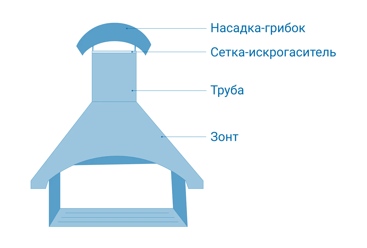 Для снижения риска возгорания и предотвращения неприятностей с соседями, к которым ветер может занести искры или пепел, рекомендуется оснастить трубу специальной насадкой в виде грибка. На выходе дымохода следует установить искрогаситель, который можно сделать из обычной металлической сетки.
