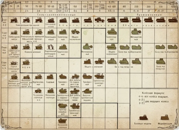 - 5 – колесная техника для полевых работ и перевозок в труднопроходимых местах;
