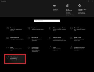 - Пункт «Обновление и безопасность»;